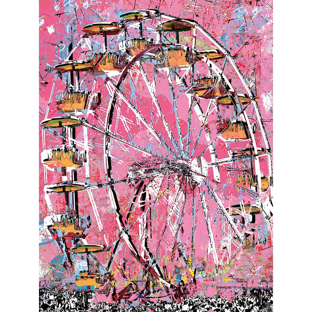 Ferris Wheel. While this original is sold, I am offering prints on metal, hand varnished with a solid wood black floater frame. The Ferris Wheel is available in these sizes: